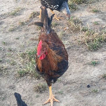 V loves his hens. He is the kindest rooster. V is always up for adventure and the first to check out what is new. V got a leg infection and passed away 7/1/2021